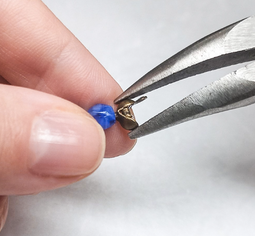 При помощи длинногубцев или тонкогубцев закрываем скуфейку, см фото 6. Первая подвеска готова.